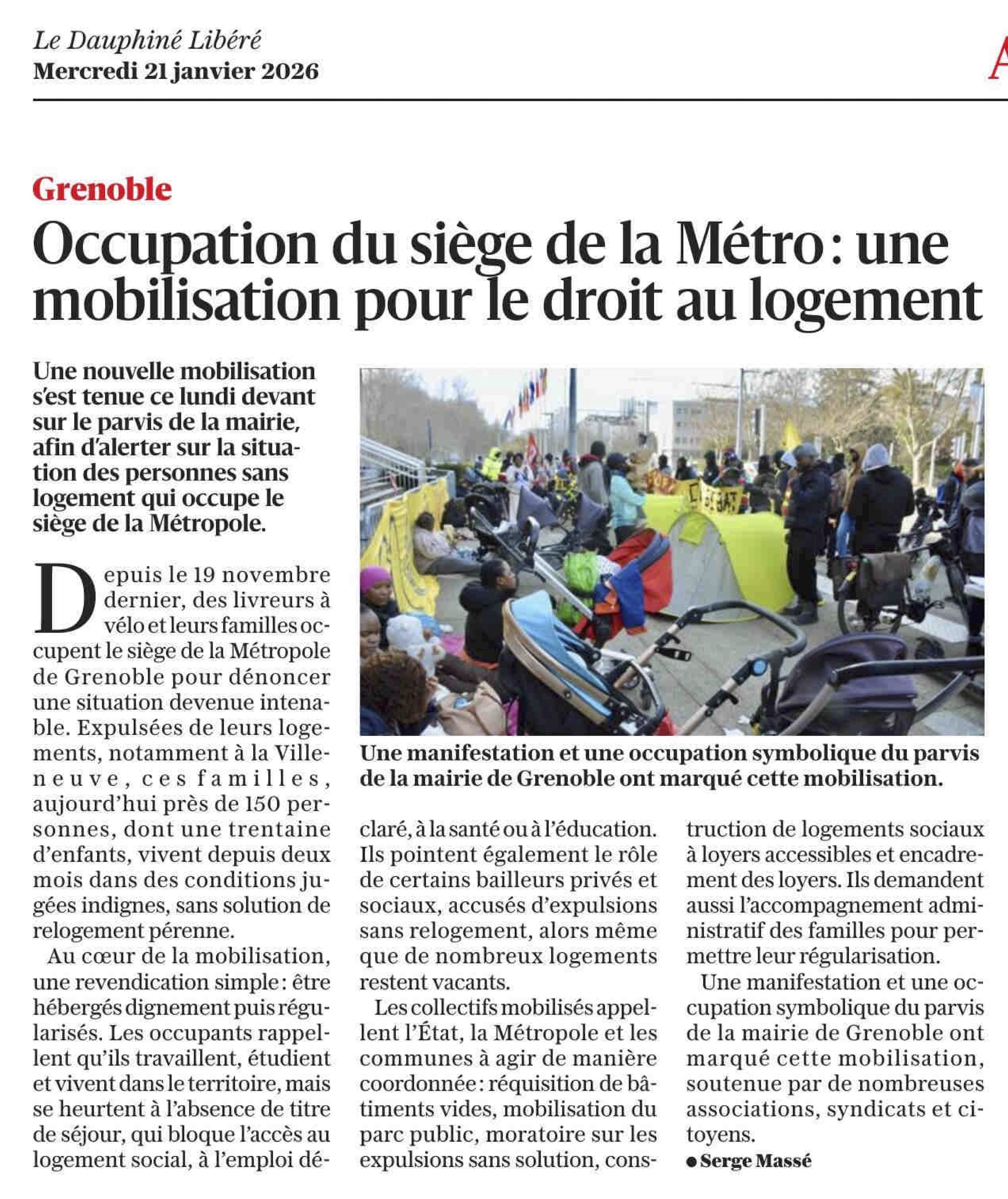 21 janvier 2026 : Mobilisation pour le droit au logement (Dauphiné Libéré)